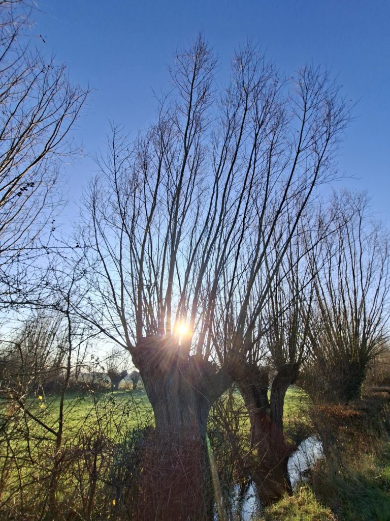 in weides met knotwilgen, poelen, grachten, beken.